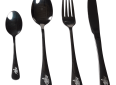 Příbory - Praktická příborová sada, která je vyrobená z černé nerez oceli. Sada je dodávána v praktickém textilním obalu uzavíratelném na zip.Sada obsahuje: Polévkovou lžíci, vidličku, nůž a čajovou lžičku.