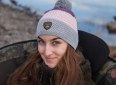 Dámská zimní čepice v tříbarevném provedení s bambulí, která má fleecovou podšívku.