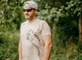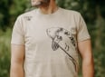 Kvalitní pánské tričko v béžové barvě s naším originálním designem vyplouvajícího kapra v přední části.