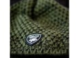 Férfi téli sapka olíva zöld színben pomponnal, amely fleece bélésű.
